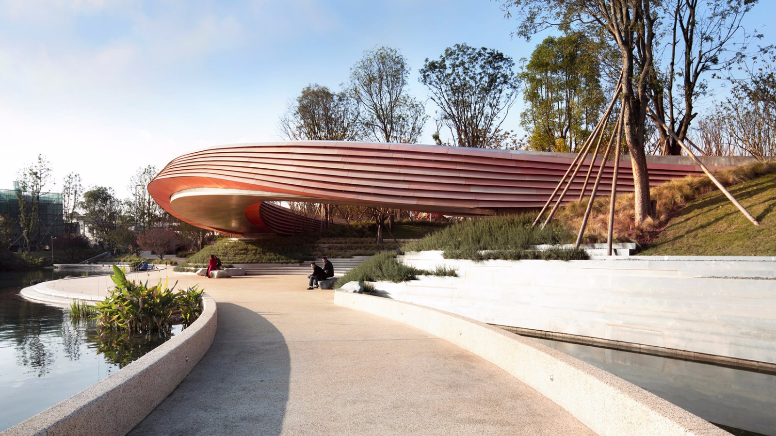 The project is located in a section of waterfront public green space at the junction of Luhu Art Exhibition Center, Municipal Road and Lake District. It is a node shared by Luhu Lake in the entrance area and the city. Because it is attached to the main building of the art exhibition center with a strong sense of sculpture, it is named as the art exhibition park.