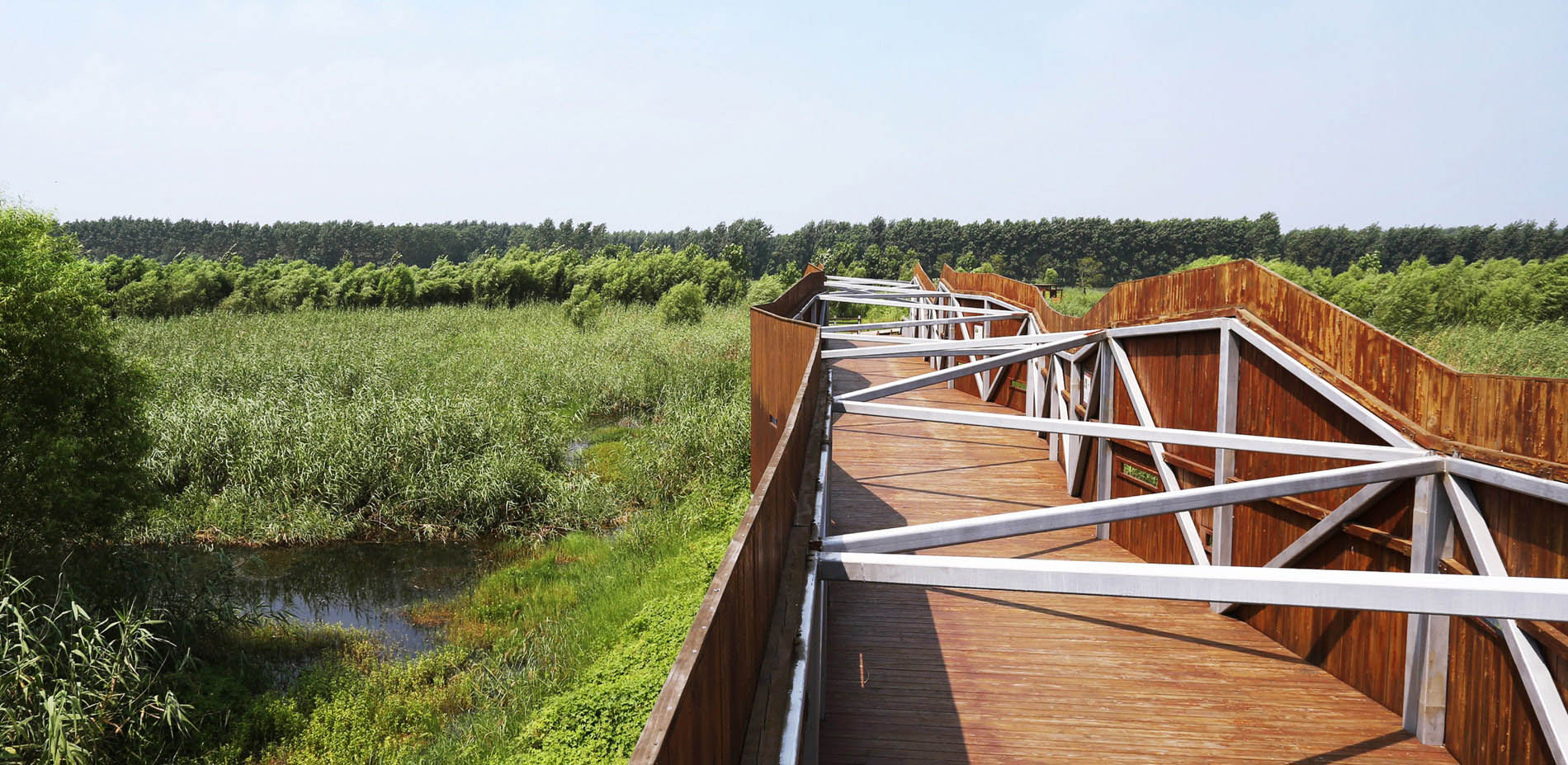 △ Wooden Trestle Road Network and Viewing Platform run through the base, creating a variety of rich experience for visitors to shuttle between reed land and poplar bushes.