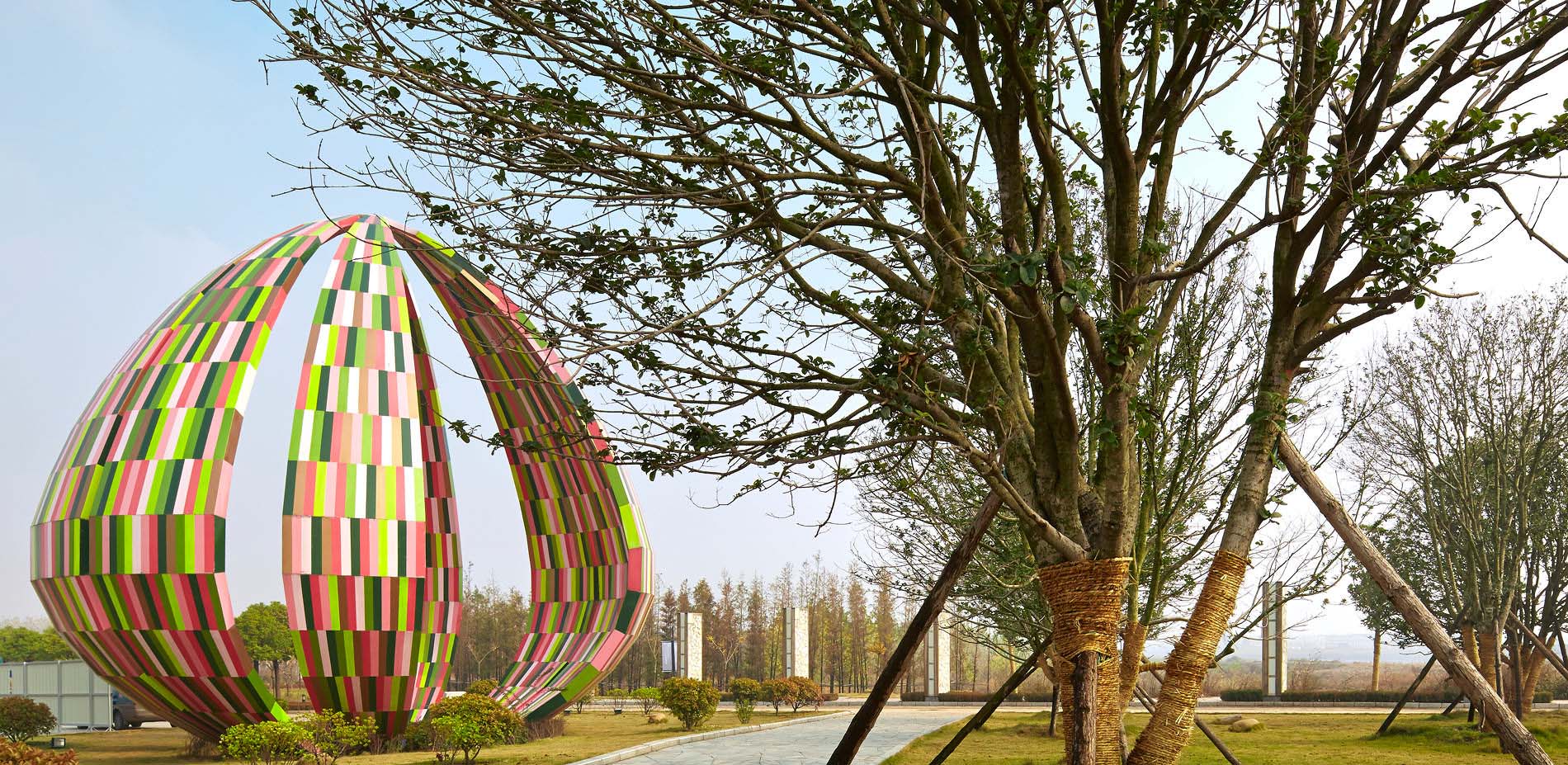 △ The lotus of Weishan Lake is of great significance to local culture and economy. This contemporary sculpture commissioned by the designer is a symbol of the entrance to the park.